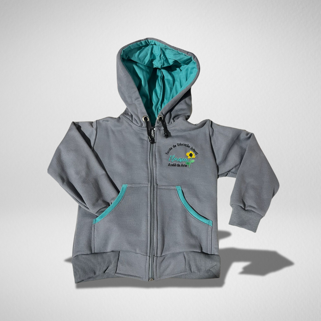 Casaco de moletom canguru com zíper, da escola Florescer.